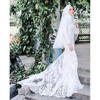 Gaun Akad Nikah Jumbo Fullset Putih Muslimah Syari Mewah Gaun Pengantin Muslimah Syari Modern Baju Nikah Pengantin Wanita Putih Islami Fullset Lazada Indonesia